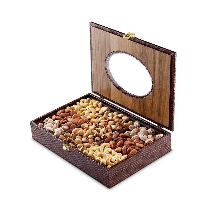 این باکس خاص و زیبا، با ترکیبی از آجیلهای خام و میوههای خشک سالم، هم یه پذیرایی شیکه، هم یه هدیه دلنشین.